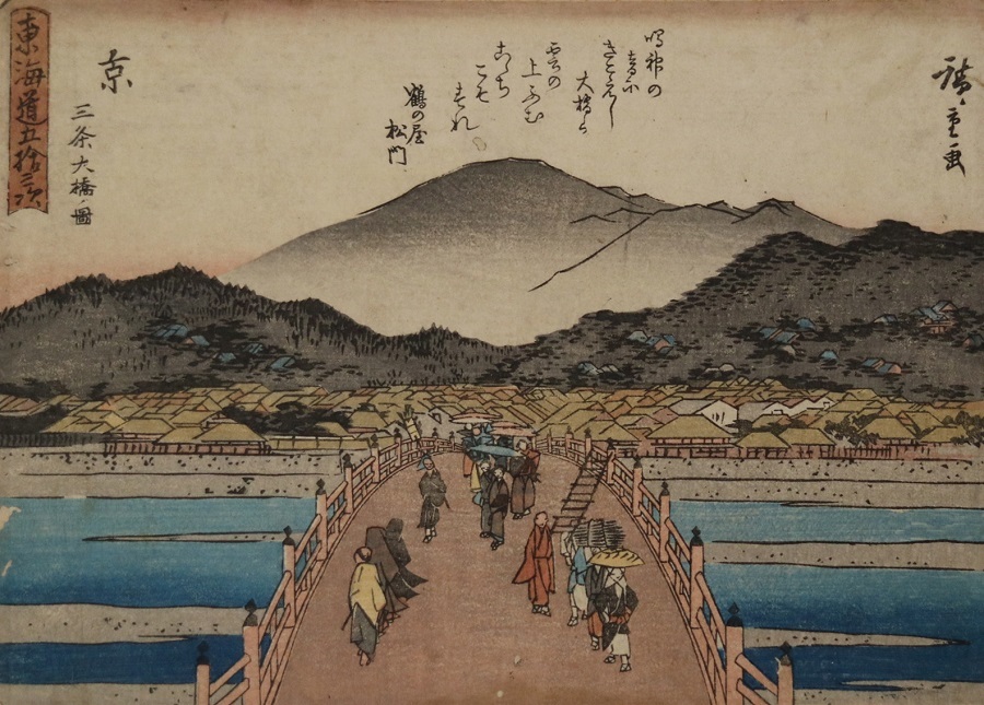 Kyo : Image du pont Sanjo-Ohashi, extraite de la série « Les cinquante-trois stations du Tokaidou »