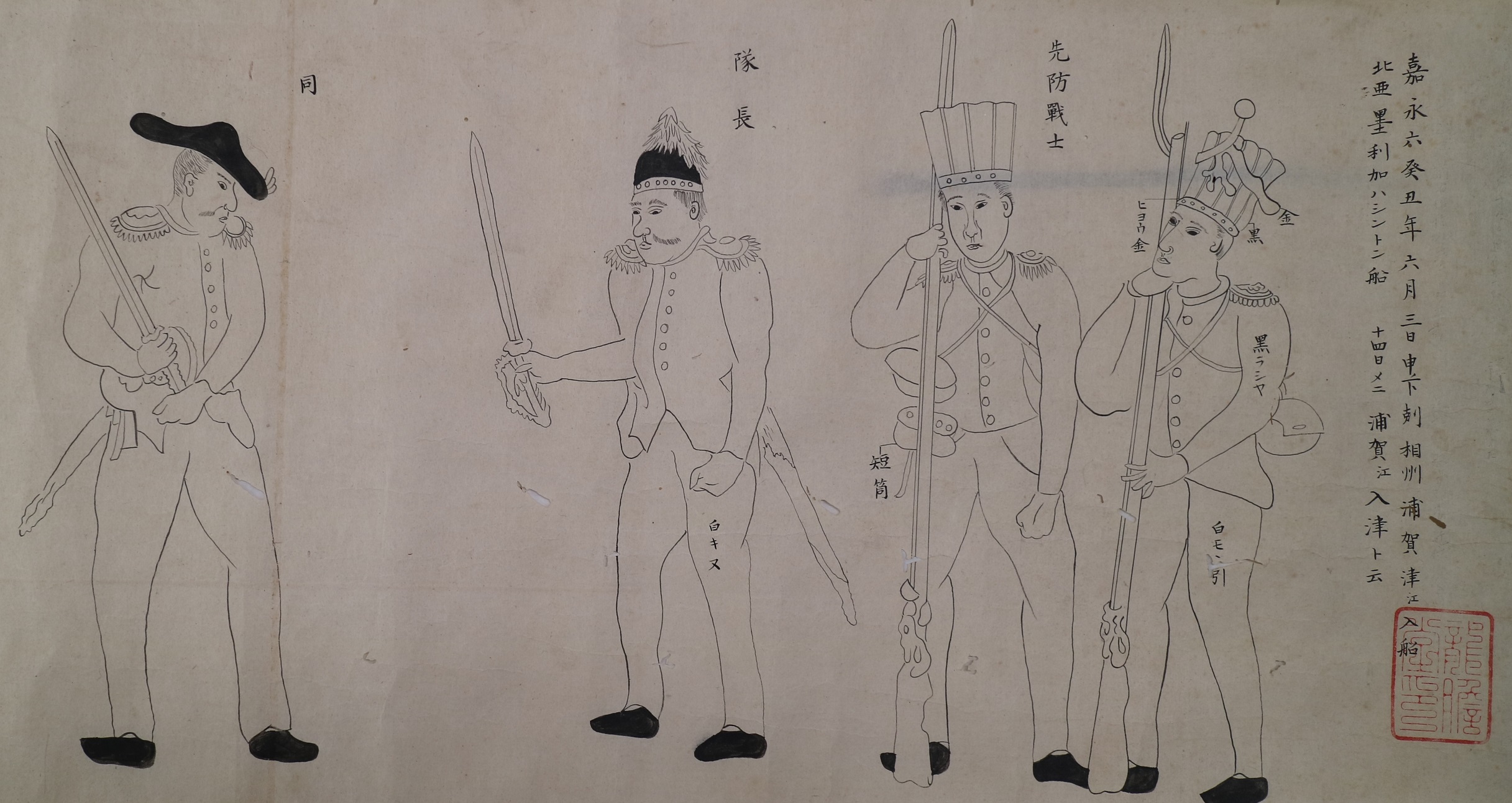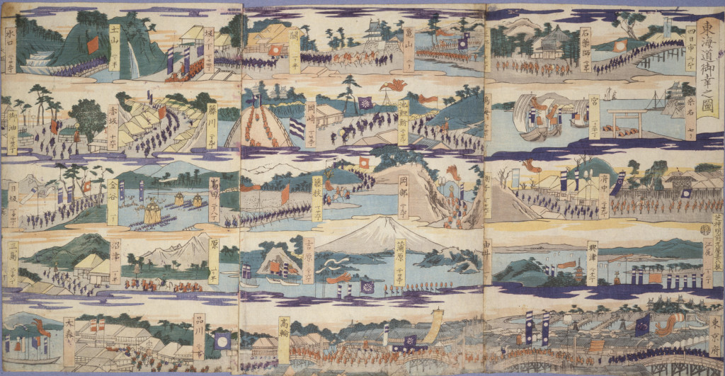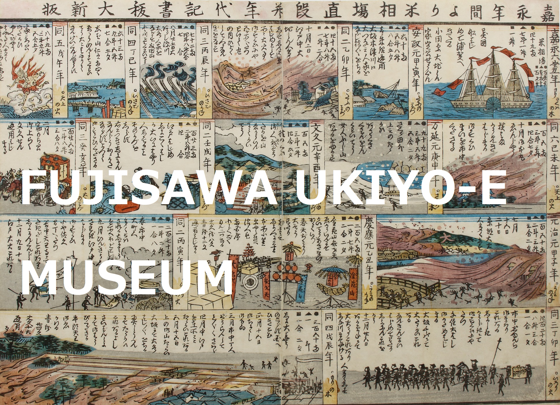 HOME 参展材料说明一览表 参展材料说明一览表 1.江户时代的日荷交流杂谈 森岛中良 2.一支来自美利坚合众国的船队驶入相模国浦贺港 作者不详 3.瓦版:一艘黑船 作者不详 4.浦賀囲图 作者不详 6.横滨开放港口风物声像记录,第一卷・第二卷 歌川贞秀 7.一位来自法国的女性和一位来自荷兰的男性 落合芳幾 15.《日本的特点:美国的远征》,Illustrated London News 作者不详 18.1853年至1868年间大米市场事件汇编及记录 作者不详 20.儿童踩高跷玩耍 作者不详 21.儿童玩耍:六花 三代 歌川广重 23.明治天皇沿东海道前往江户的游行队伍 月冈芳年 24.相模国七里滨海滩:江之岛金龟山的远景 二代 歌川广重 25.题名不详(『青砥稿花红彩画』中的白浪五人男) 歌川芳鶴 26.题名不详(『青砥稿花红彩画』中的白浪五人男) 歌川周重 27.江岛大名神社常盘津妇女会 二代 歌川国辉 28.相模国江之岛的岩屋(海蚀洞),出自《日本六十二国地形草图集》系列 三代 歌川广重 34.President Grant的一生 编剧:仮名垣鲁文 / 插画:歌川国政 45.东京名胜,上野公园三景 小林幾秀