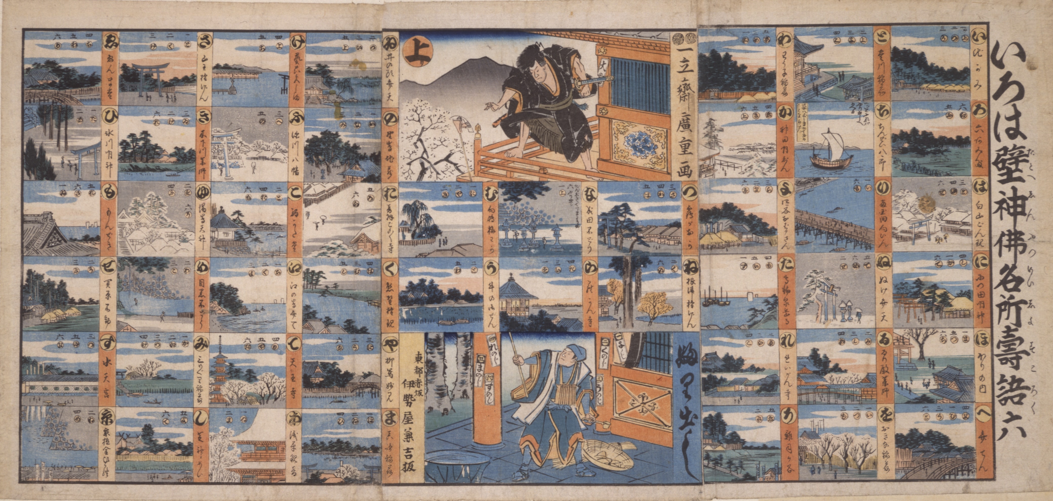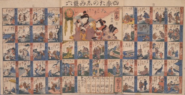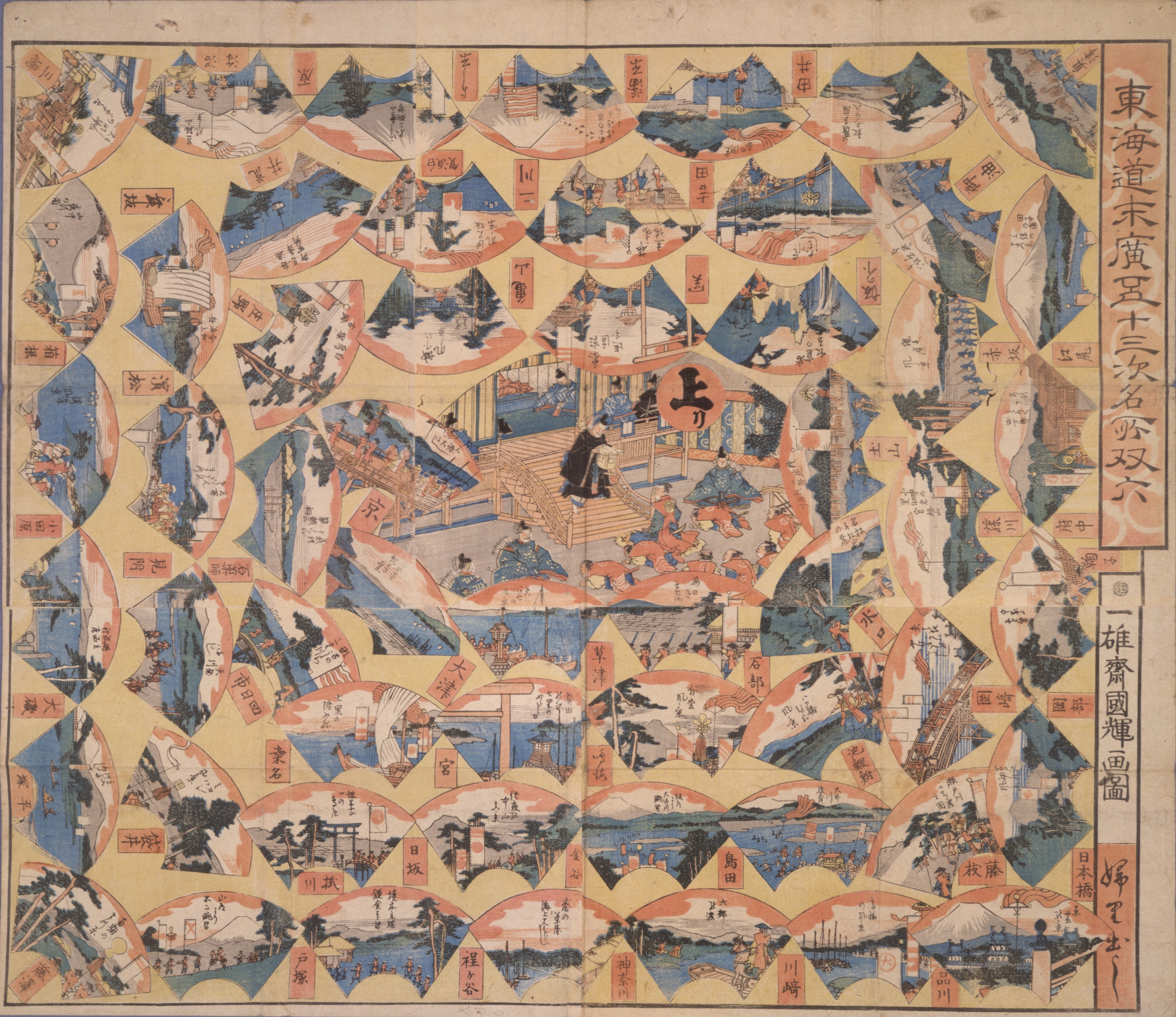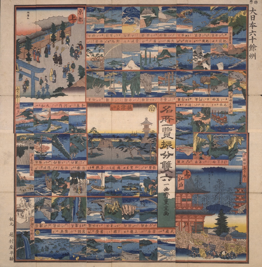 HOME LisLista de explicaciones de los materiales expuestos Lista de explicaciones de los materiales expuestos 5.Juego de tablero Sugoroku de la vista al Monte Fuji de la serie Las cincuenta y tres estaciones de Tokaido Utagawa Hiroshige 6.Sugoroku Board Game of Perambulating along the Toukaidou Utagawa Hiroshige 7.Juego de mesa Sugoroku con imágenes detalladas de lugares famosos y especialidades a lo largo de la carretera Tōkaidō, con poemas de actores Yoshiiku Ochiai 8.Juego de mesa Sugoroku de viaje por las cincuenta y tres estaciones del Tōkaidō a través de la poesía Totoya Hokkei 9.Juego de tablero Sugoroku del disfrute de las cuatro estaciones del año unknown 14.Juego de mesa Sugoroku: Viajes por santuarios, templos y lugares famosos según Iroha Utagawa Hiroshige 19.El juego de mesa Sugoroku de la Visita Imperial unknown 20.El juego de mesa Sugoroku de las Cincuenta y Tres Estaciones de la Carretera Toukaidou Utagawa Kuniteru 21.Recorriendo lugares famosos de Japón con el juego de mesa Sugoroku Utagawa Yoshitsuya 22.Juego de Sugoroku de las Sesenta y tantas provincias de Japón Utagawa Hiroshige II 23.El juego de mesa Sugoroku: Viaje a Kioto a través de la peregrinación al Santuario de Ise Utagawa Hiroshige 26.Isla de Enoshima, de la serie “Los lugares famosos de los Toukaidou” Utagawa Sadahide 29.Futagawa, Ishikawa Tomoichi, de la serie Las cincuenta y tres estaciones de Tōkaidō Utagawa Kunisada (Toyokuni III) 32.Las siete deidades de la buena fortuna en un barco con la letra de la canción Boating Utagawa Sadahide 38.Fukurokuju, de la serie “Poemas e Imágenes de los Siete Dioses de la Buena Fortuna” Utagawa Kunisada (Toyokuni III) 46.Juego de mesa Sugoroku con coches populares Utagawa HiroshigeIII 62.Juegos de mesa Sugoroku de lugares famosos de todo el mundo Ozeki Toyo 65.Juego de mesa Enoshima Sugoroku unknown
